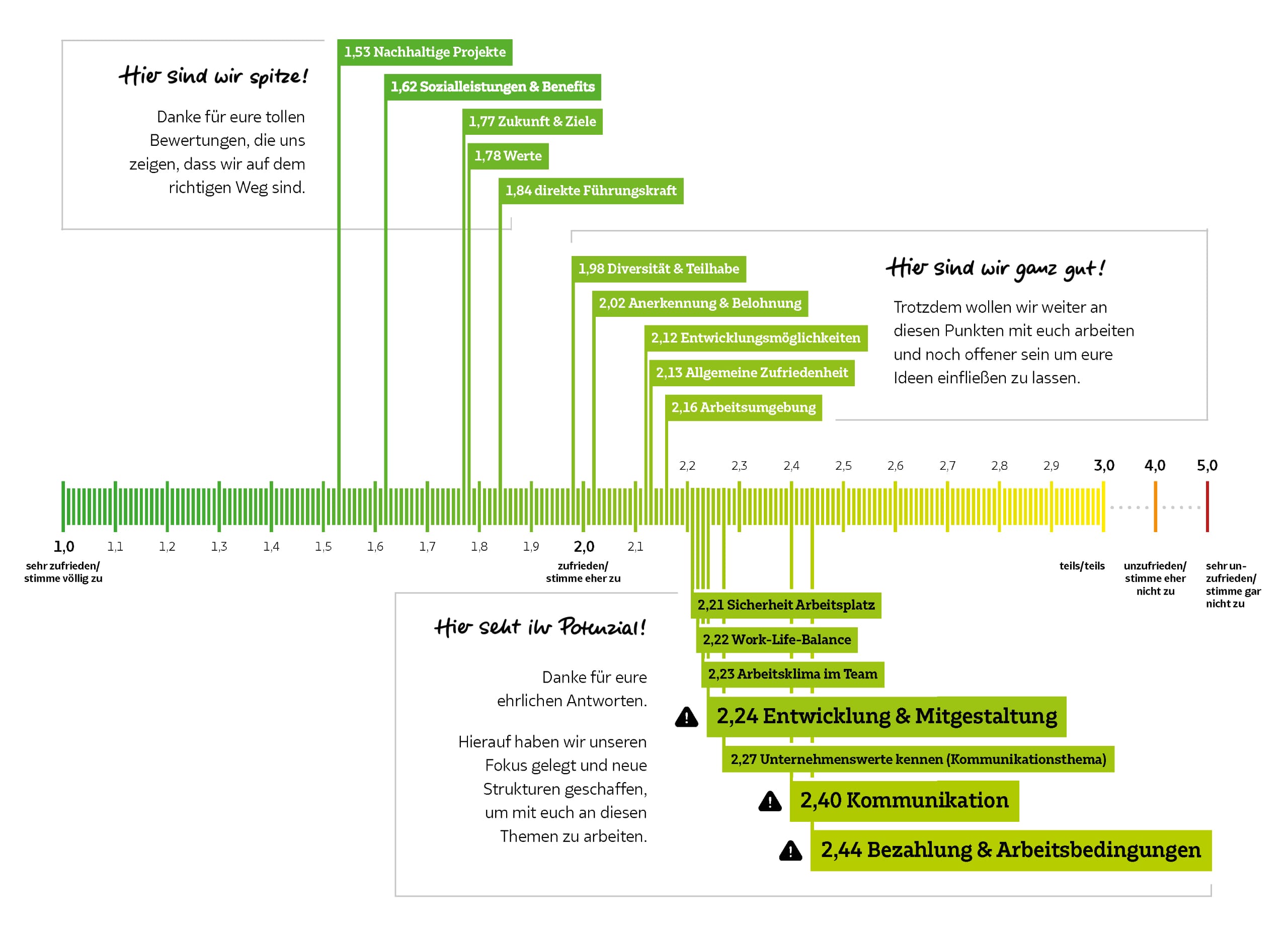 Gibt es Aspekte der Unternehmenskommunikation, die deiner Meinung nach in folgenden Bereichen verbessert werden könnten?
